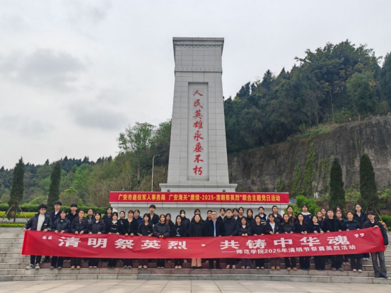 为弘扬爱国主义精神,传承红色基因,激励青年学子铭记历史、砥砺前行,2025年4月1日,国产又粗又猛又爽又黄视频组织师生代表前往广安凤凰山烈士陵园,开展“清明祭英烈·共铸中华魂”清明节爱国主义教育活动。
