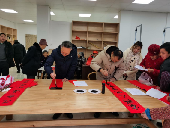 随后,党总支副书记牛振宇在社区党群服务活动中心会议室上了一堂以“增进民生福祉,提高人民生活品质”为主题的专题党课,同时对民法典进行了解读。副院长周安和驻村干部唐建伟现场挥毫泼墨书写了大红“福”字和充满美好寓意的春联,并赠送给乡亲们。