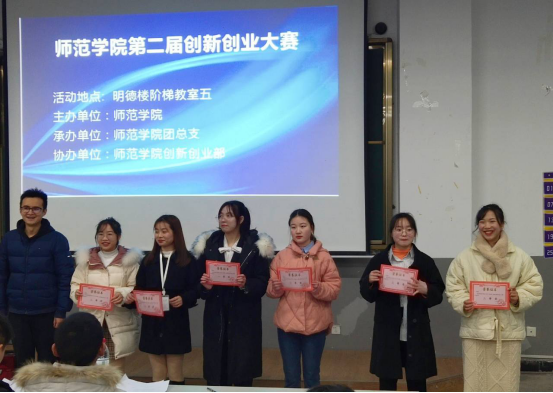 李勇在致辞中以他自己大学时的创业经历鼓励同学们要敢闯敢拼,坚持不懈,成就出彩人生。此次大赛由六组进入决赛的队伍组成。在比赛过程中,各团队发言人台风稳健,讲述生动,从项目主旨、产品介绍、市场分析、核心竞争力和团队管理等方面做了详细的创业计划介绍。评委们基于创业方案完整性和可行性进行仔细评审,对各组发言人进行了专业的提问和建议。经过激烈的竞争,19级语文教育5班团队的“青春校园”项目拿下了大赛一等奖。比赛最后,三位优秀大学生创业代表分享了自身创业经历,并鼓励同学们积极进取,勇于创业。