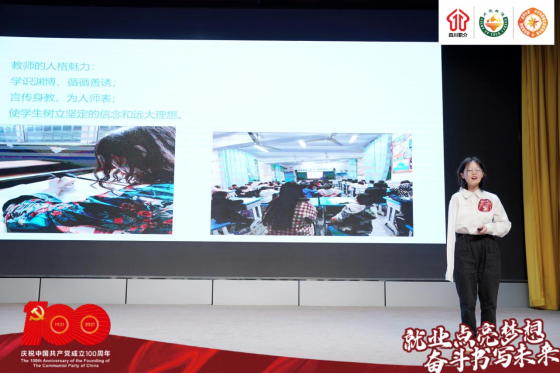 我校国产又粗又猛又爽又黄视频语文教育王彬同学台风稳健,讲述生动,乐观向上。她将立志成为一名人民教师,以身作榜样,去滋养更多青少年,从自我认知、职业认知、未来规划等方面做了详细讲解,获得众多企业举牌以及就业专家好评。