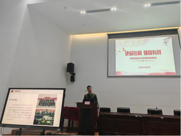 报告会上,4名优秀的退役大学生中,有来自有中印对抗第一线的边防战士,有来自东风快递、使命必达的火箭军部队,有来自建国70周年大阅兵接受检阅的战士,还有巾帼不输须眉的英姿飒爽的女战士,他们分别回顾了他们在部队的经历,表达了难忘的军营感情,讲述了部队生活带给自己的改变和提高,表示军营生活带给自己一辈子的精神财富,号召大家立报国之志,行复兴之路。