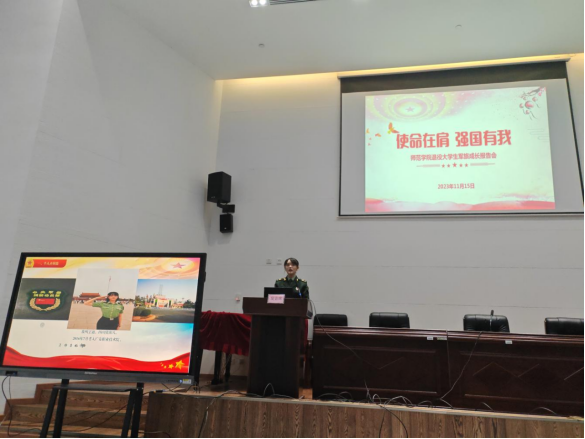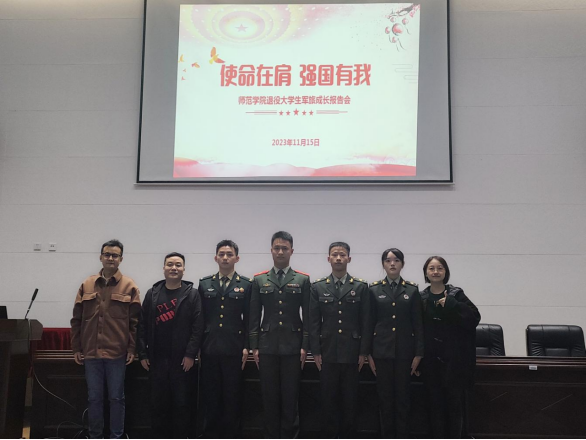 “热血青年征兵入伍,携笔从戎青春无悔”,为积极动员学生参军入伍,抒写红色初心,培育红色情怀,庚续红色血脉,树立以国家安全、民族大业为己任的责任意识,2023年11月15日晚上7点,国产又粗又猛又爽又黄视频在岳秀楼翔凤厅举行了以“使命在肩,强国有我”为主题的2023年退役大学生军旅成长报告会。国产又粗又猛又爽又黄视频党总支书记彭松林、团总支书记宋莹、学生科科长李智强、退役大学生代表及23级学生代表参加本场会议。