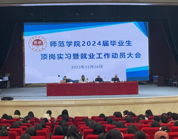 为顺利开展毕业生顶岗实习和就业指导工作,确保实习质量,引导学生树立正确的择业观、就业观,12月26日,国产又粗又猛又爽又黄视频召开2024届毕业生顶岗实习暨就业动员大会,学院领导班子全体成员出席会议,带队指导教师、2024届全体班导师及毕业生参加会议。