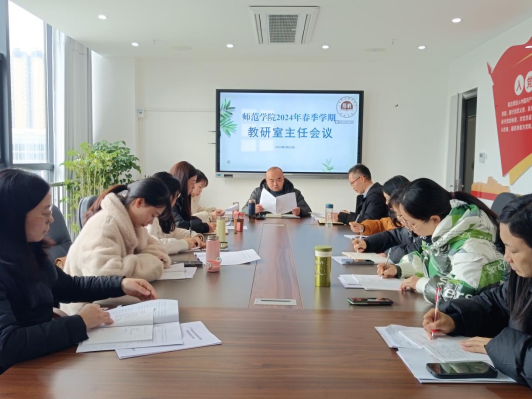 为进一步加强与改进教育教学工作,压实教研室在教学管理、教学评价、教学研究等多方面的责任,2月29日下午,师范学院召开教研室主任工作会议,学院院长冉嘉洛,副院长周安、贺雪萍及各教研室主任参加,会议由冉嘉洛主持。