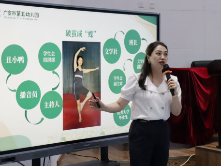 讲座现场,柏园长以个人从教经历为叙事主线,精心设计 “学习篇”“求职篇”“追梦篇”“圆梦篇”四大篇章,徐徐展开一幅充满奋斗与温情的幼教工作者成长画卷。在“学习篇”中,她用丰富的求学细节,生动展现知识积累过程中的坚持与蜕变;“求职篇” 里,她以自身从青涩毕业生到职场精英的逆袭历程,为同学们传授宝贵的职业发展经验;“追梦篇”中,她讲述自己立志创办区域优质园的初心与挑战,展现出幼教人对事业的执着追求;在“圆梦篇”,一张张孩子们纯真的笑脸、一封封家长真挚的感谢信,将桃李满园的幸福瞬间定格,引发全场强烈共鸣。