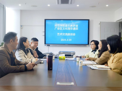 3月19日下午,国产又粗又猛又爽又黄视频与广安区文化馆非遗部在岳秀楼举行艺术交流座谈会。会议聚焦“非遗传承与创新、艺术创作与育人”探讨校地合作新模式。学校音乐教研室李佳团队、红色文化研究中心向黎立等与广安区文化馆非遗部主任曾俊达深入交流。